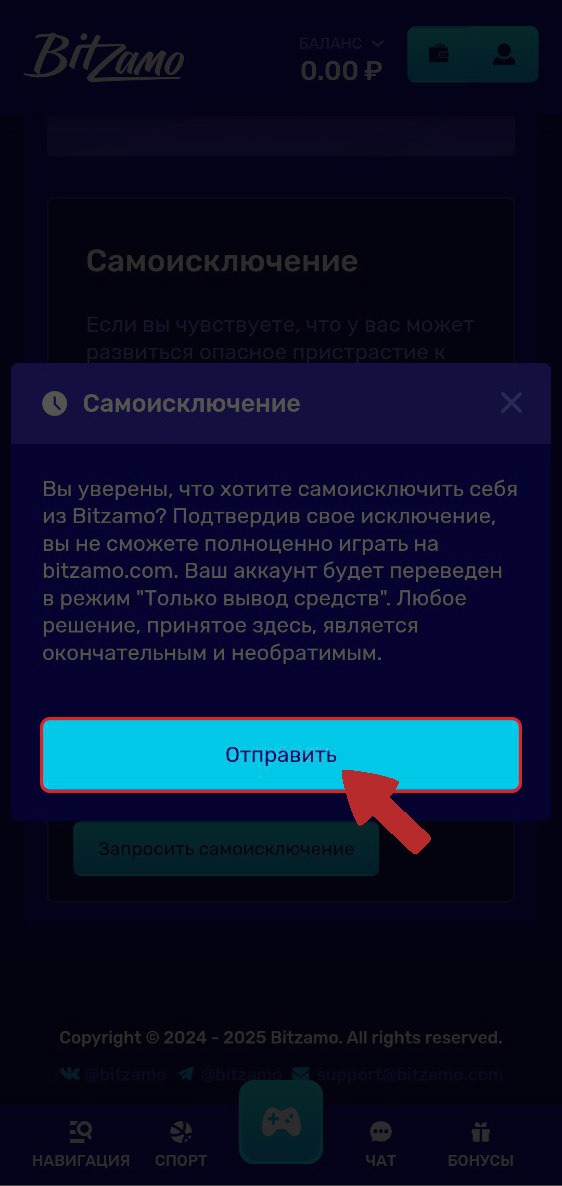 Подтвердив свое исключение, вы не сможете полноценно играть. Ваш аккаунт будет переведен в режим "Только вывод средств".