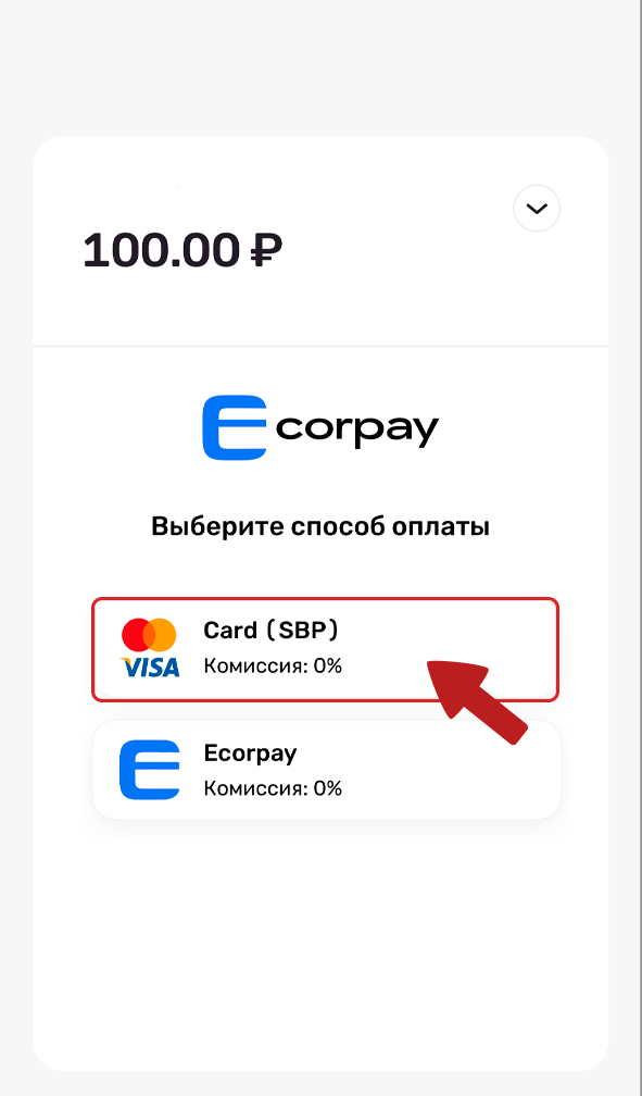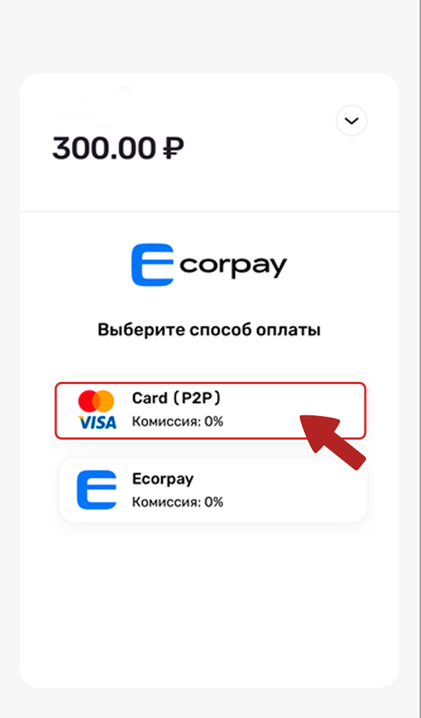 2. На странице оплаты, выберите оплату картой (например Р2Р, в зависимости от платежного метода)