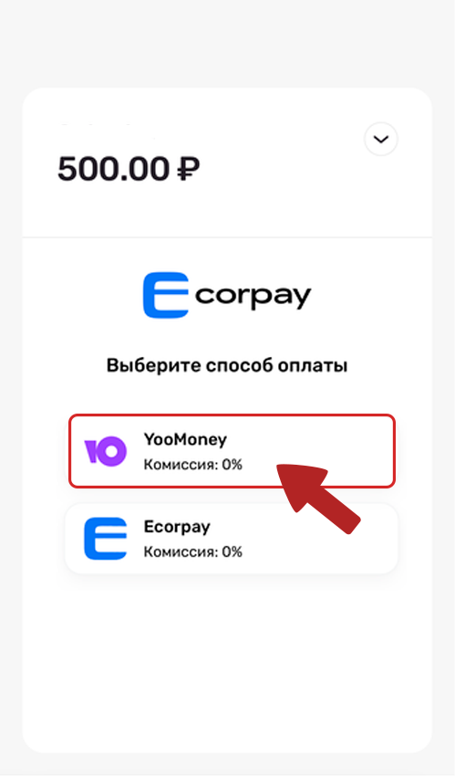 1. Выберите метод Ecorpay и укажите сумму перевода