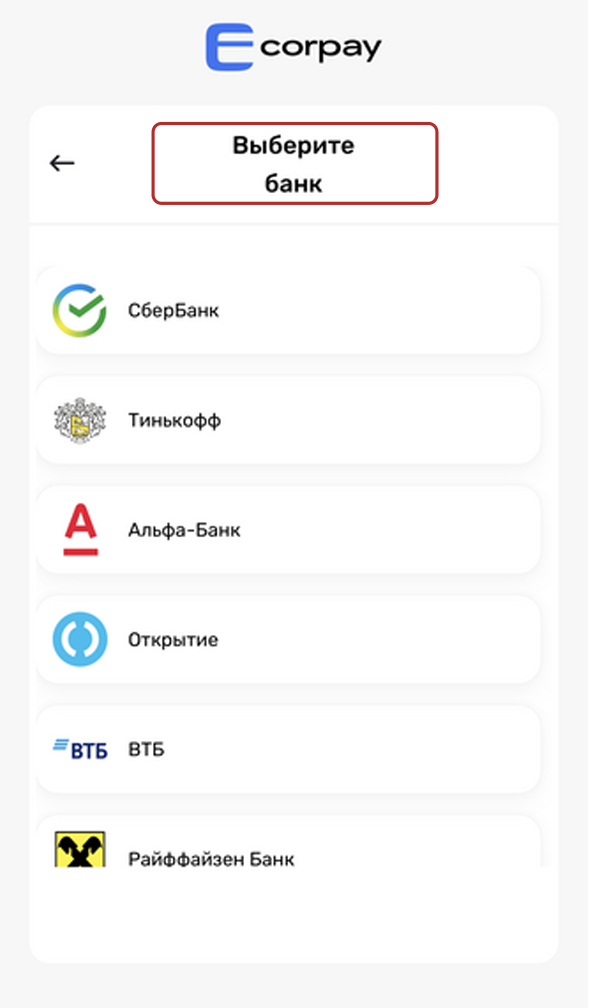 3. Click on payment from card, you will get to the choice of the bank where you want to transfer funds