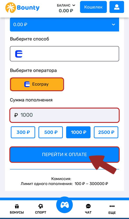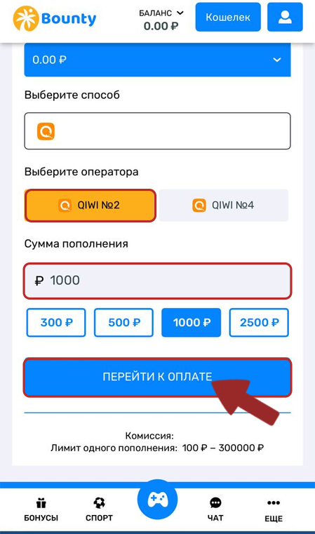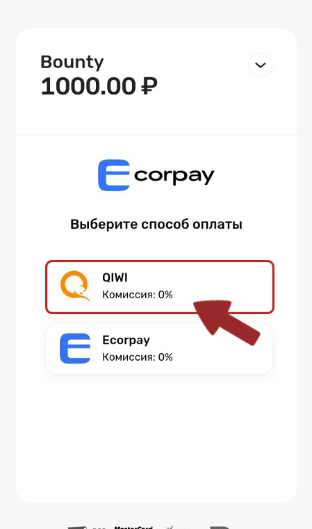 1. Click on QIWI, select a payment method, specify the amount