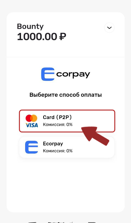 2. On the payment page, select payment by card (e.g. P2P, depending on the payment method)