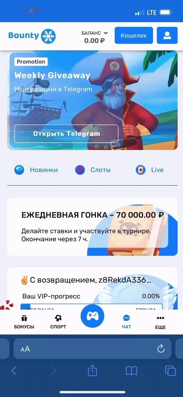In order to become a winner, you need to be active on the site, make more deposits and bets, follow the chat rules and do not spam. Every 2 hours the winner and the amount of bonus will be randomly selected among active users. This bonus will add brightness and emotions to your game.