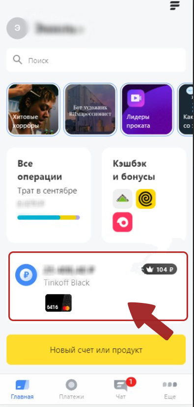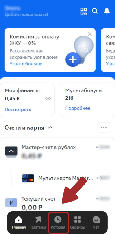 1. Выберите интересующую Вас карту/счет в приложении или на сайте и перейдите к истории операций.