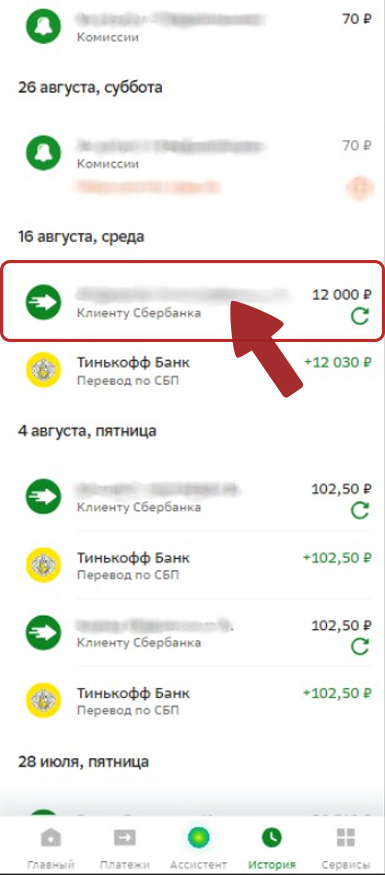 2. В истории операций, выберите операцию, которая Вас интересует.