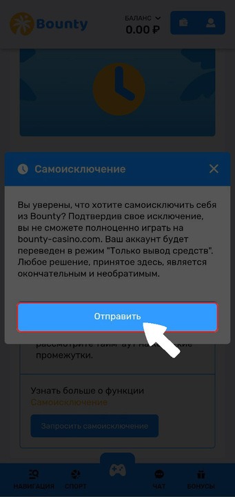 Подтвердив свое исключение, вы не сможете полноценно играть. Ваш аккаунт будет переведен в режим "Только вывод средств".