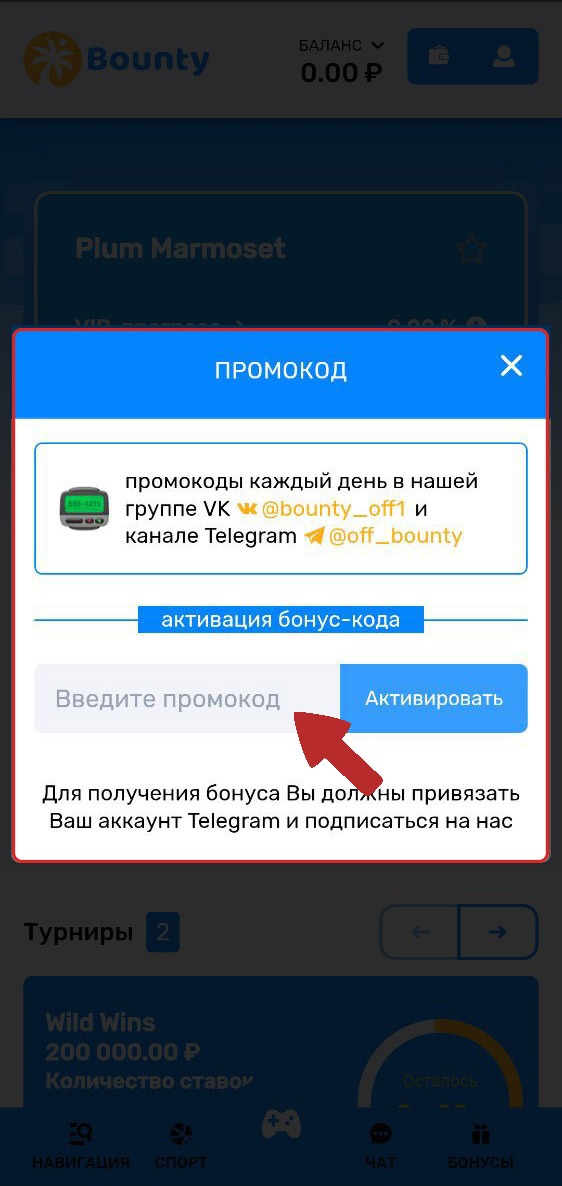 Промокоды можно найти в нашем официальном Telegram-канале: @off_bounty