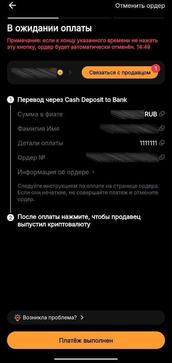 ❗ВАЖНО: Перед входом в сделку (ордер) внимательно прочитайте условия продавца (мейкера). Если они вам не подходят – просто выйдите и выберите другое объявление.