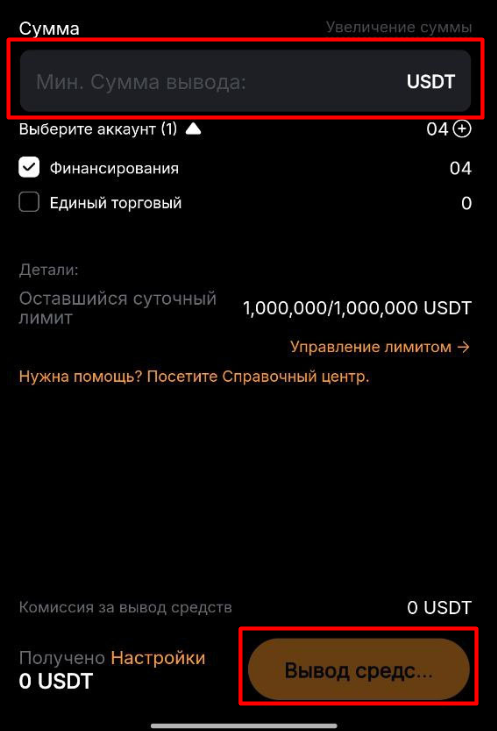 5. Выберите «Вывод средств».
