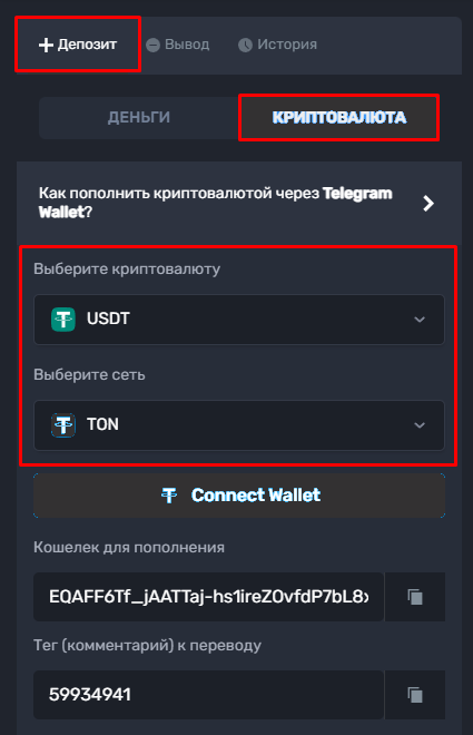 Как сделать депозит криптовалютой на нашем сайте