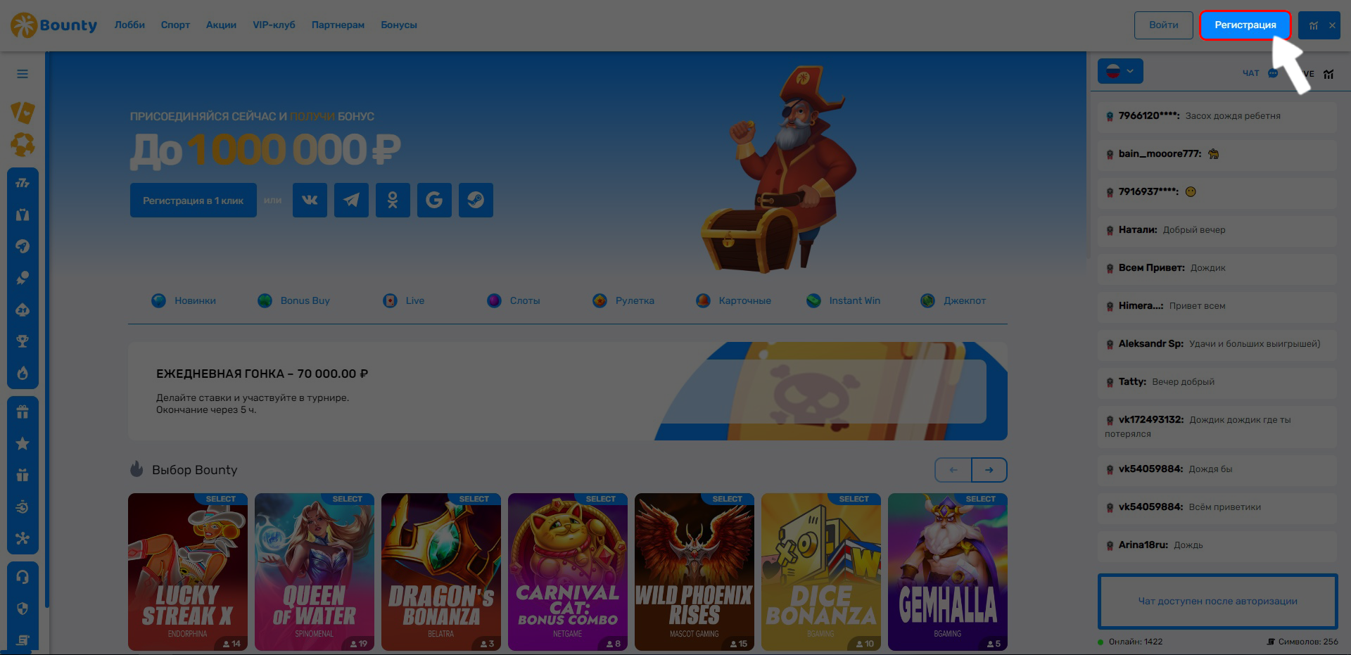 Нажмите на кнопку регистрация в правом верхнем углу сайта. Выберите удобный способ регистрации, и нажмите регистрация.