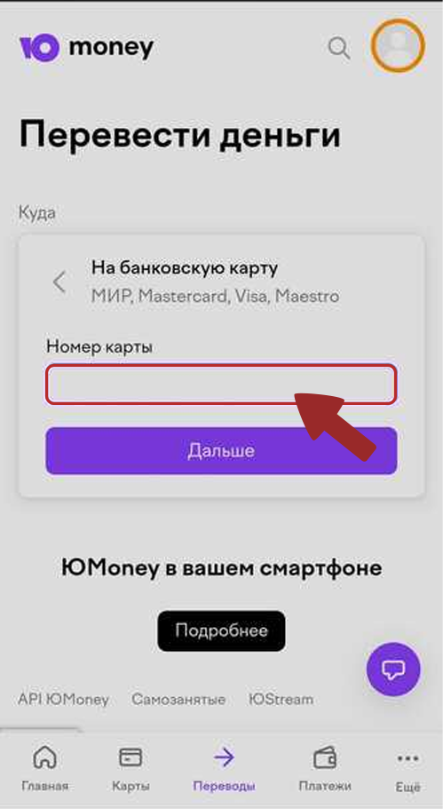 4. Go to your YooMoney wallet and select transfer to card
