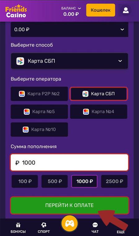 1. Select the SBP in the wallet and specify the amount