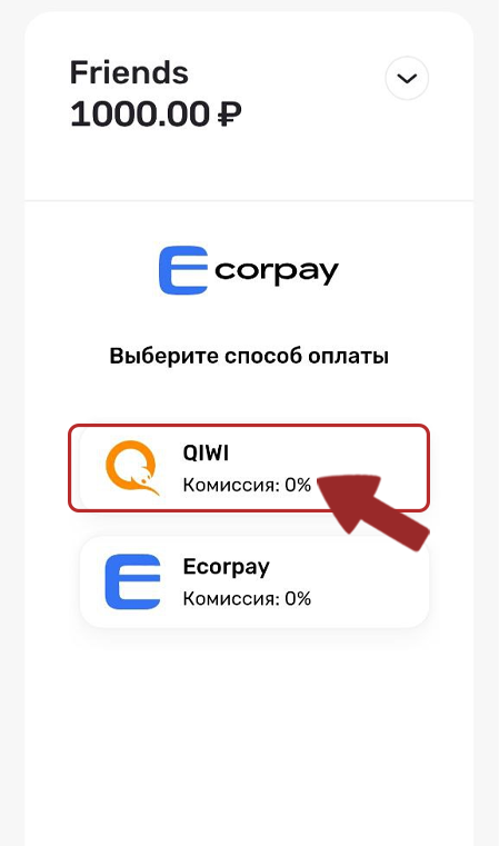 1. Click on QIWI, select a payment method, specify the amount