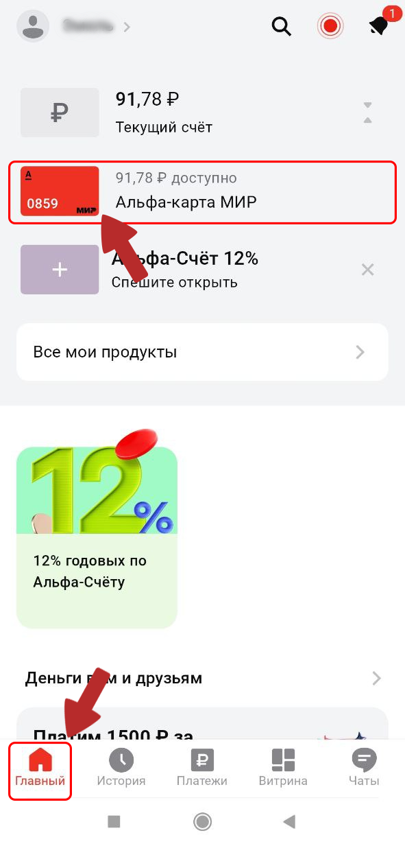 1. Выберите интересующую вас карту/счет в приложении или на сайте и перейдите к истории операций.