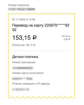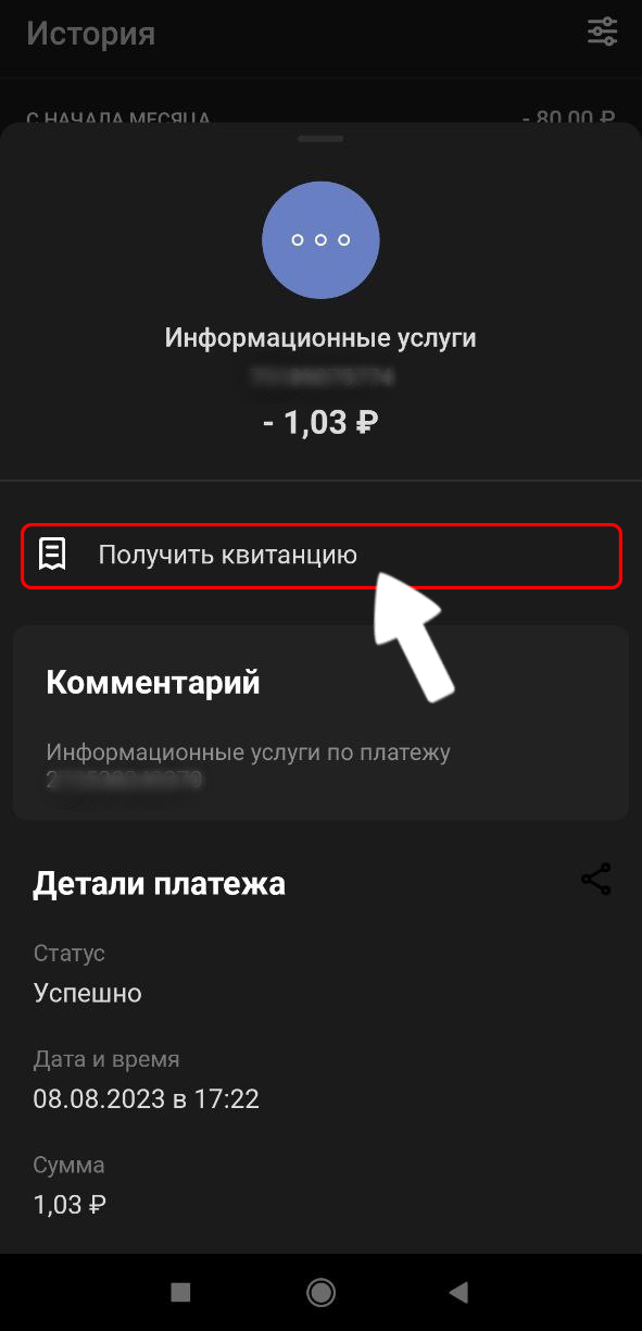 3. Нажмите на кнопку «Получить чек». Чек сохранится на вашем устройстве и вы можете отправить его по электронной почте, в мессенджере, или сохранить в виде файла.
