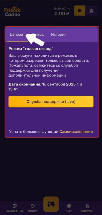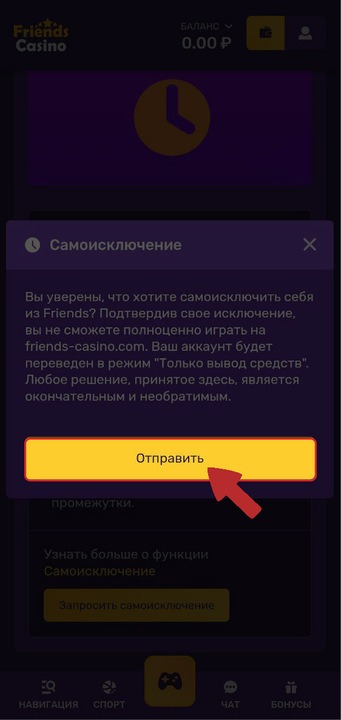 Подтвердив свое исключение, вы не сможете полноценно играть. Ваш аккаунт будет переведен в режим "Только вывод средств".