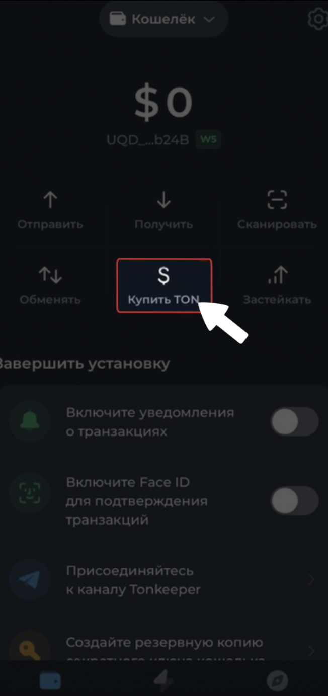 Нажмите на кнопку "Купить TON"