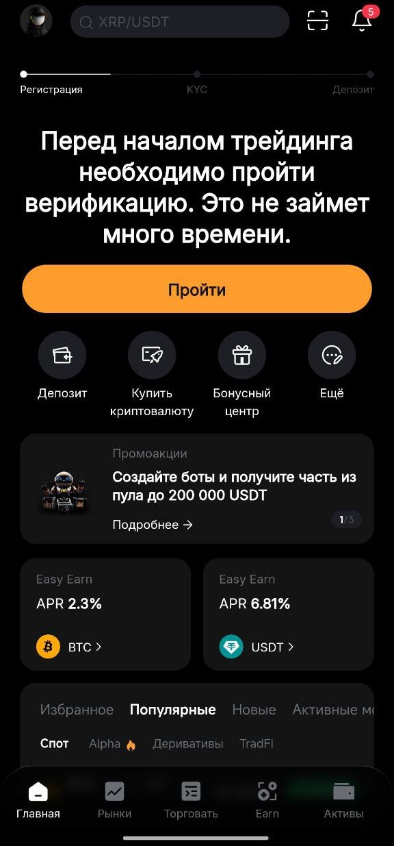 4. Для возможности покупки и продажи криптовалюты верификация обязательна, пройдите ее.