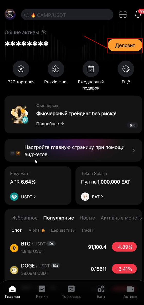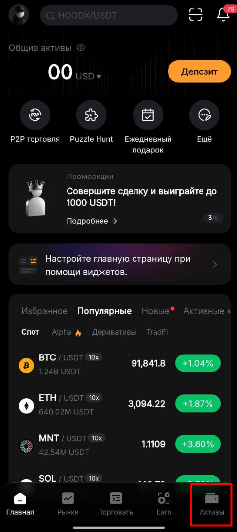 4. Вернитесь в приложение Bybit и перейдите в раздел «Активы».