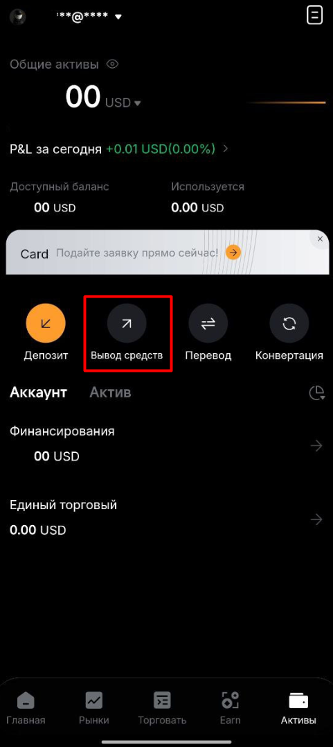 5. Выберите «Вывод средств».
