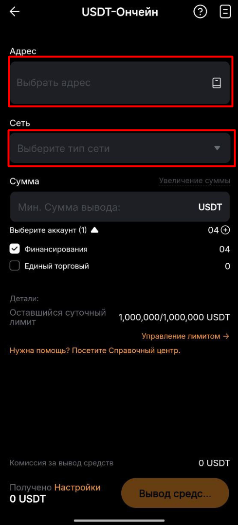 7. Выберите «Вывод средств ончейн»