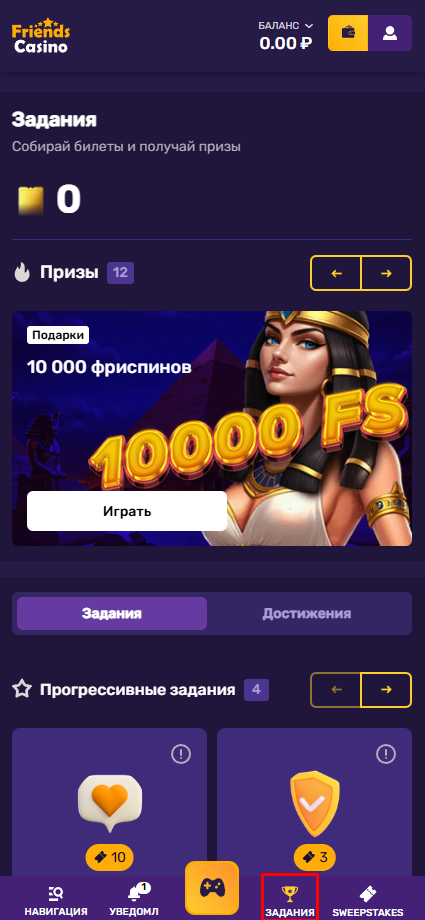 Да! Выполняйте актуальные для вашего аккаунта задания во вкладке «Задания» – за их выполнение вы получаете билеты без пополнения. Билеты зачисляются автоматически после подтверждения выполнения условий.