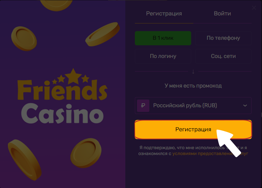 При регистрации на нашем портале вы автоматически подтверждаете, что вам исполнилось 18 лет и вы ознакомлены с правилами предоставления услуг.