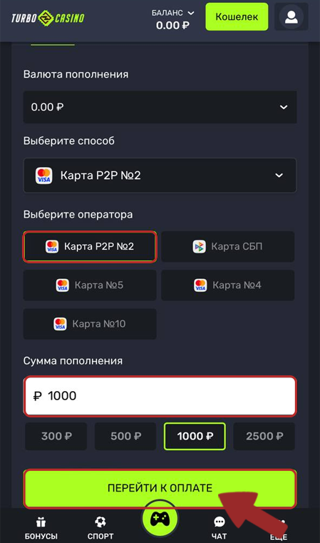 2. On the payment page, select payment by card (e.g. P2P, depending on the payment method)
