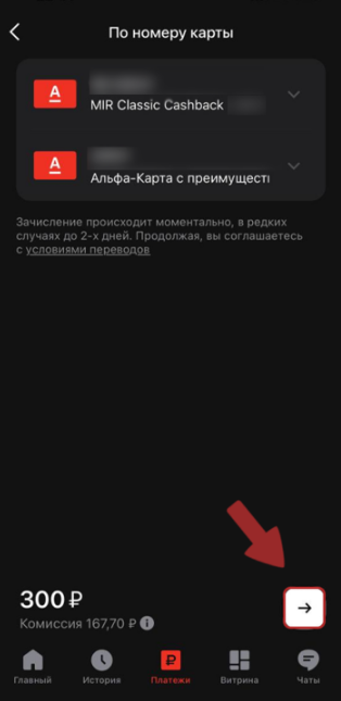 4. Open the bank application, select transfer by number, specify the number, bank and amount