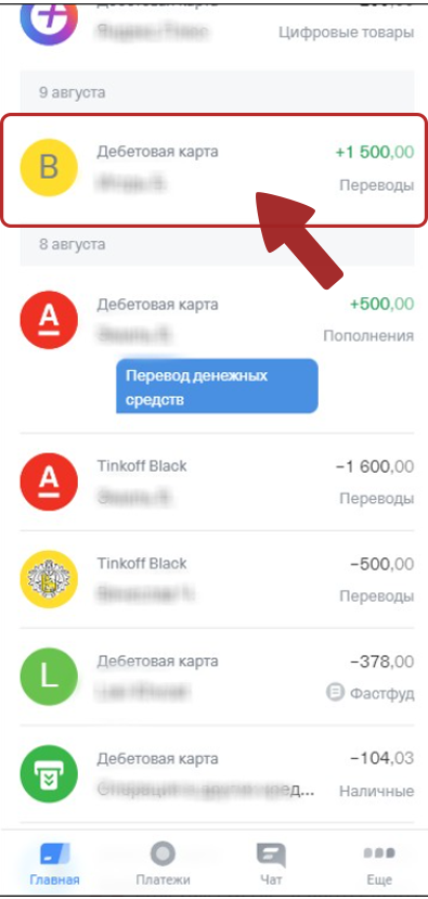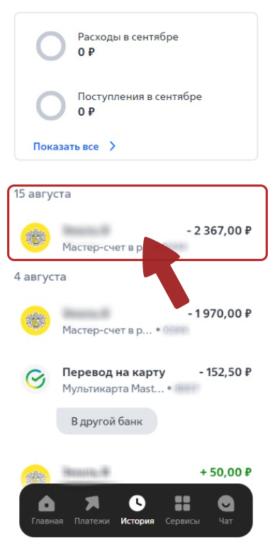 1. Выберите интересующую Вас карту/счет в приложении или на сайте и перейдите к истории операций.