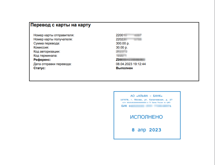 3. В открывшемся чеке можно посмотреть сумму, получателя и дату проведения операции. Далее следует выбрать кнопку «Сохранить справку».