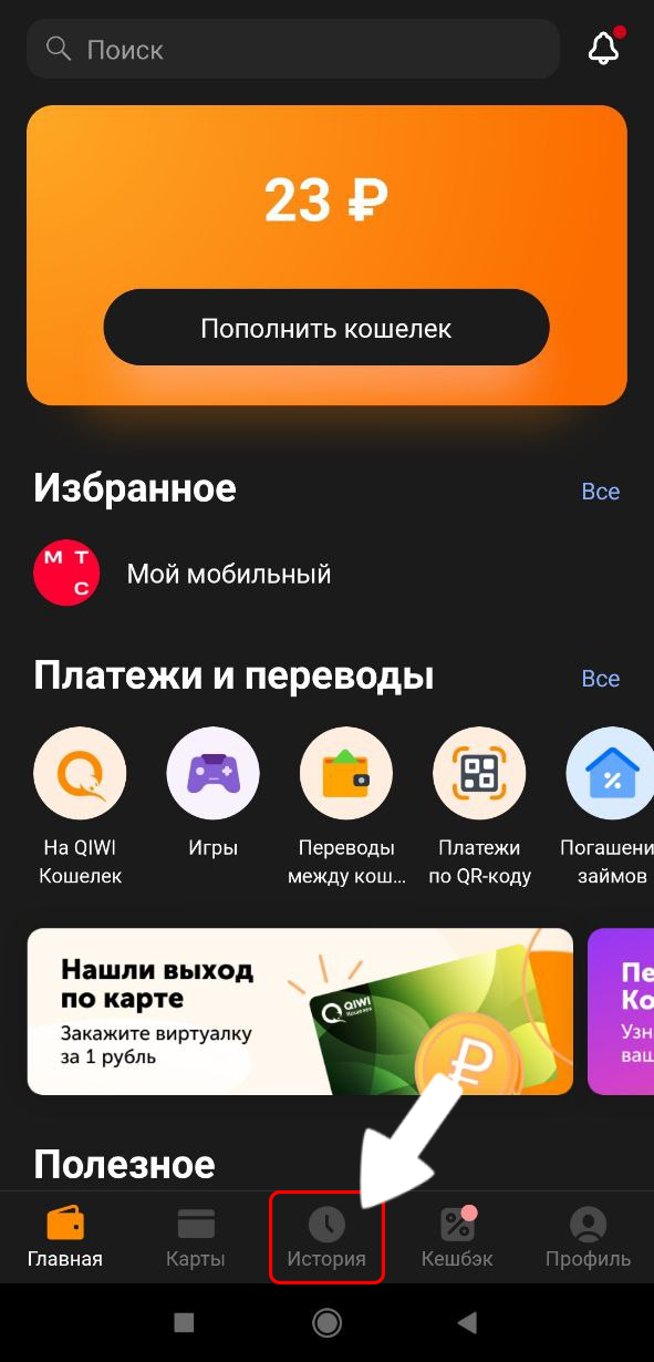 1. Чек при платеже через Киви можно получить в личном кабинете на сайте или в приложении мобильной версии. Для этого необходимо перейти в историю операций.