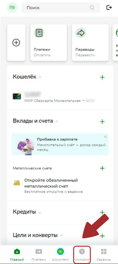 1. В мобильном приложении Для этого следует зайти на главную страницу и выбрать интересующую карту или счет. Внизу экрана нажать на кнопку «История операций».