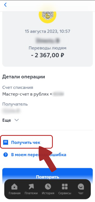 3. Нажмите на кнопку «Получить чек». Чек сохранится на вашем устройстве и вы можете отправить его по электронной почте, в мессенджере, или сохранить в виде файла.