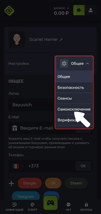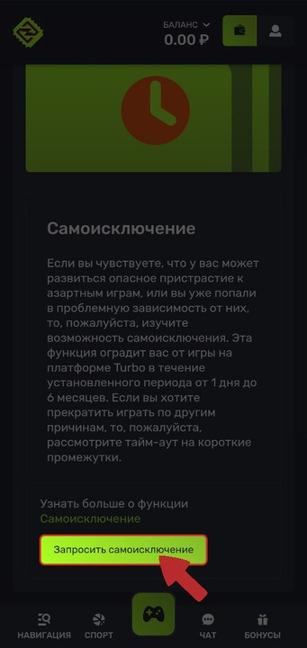 2. Выберите раздел Самоисключение.