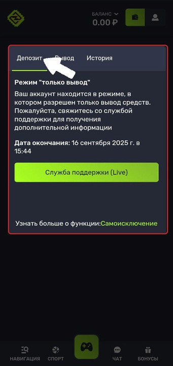 Подтвердив свое исключение, вы не сможете полноценно играть. Ваш аккаунт будет переведен в режим "Только вывод средств".