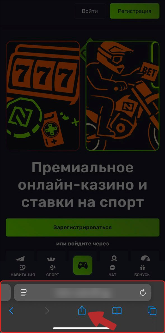2. Нажмите кнопку Поделиться (иконка квадрат со стрелкой вверх) внизу экрана.
