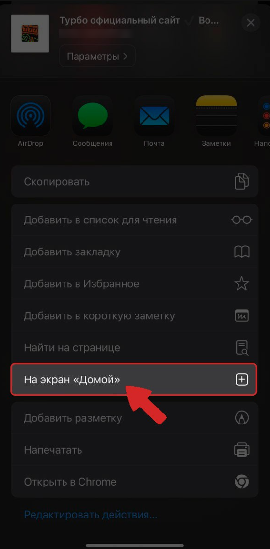 3. Выберите пункт "На экран «Домой»" (Add to Home Screen).