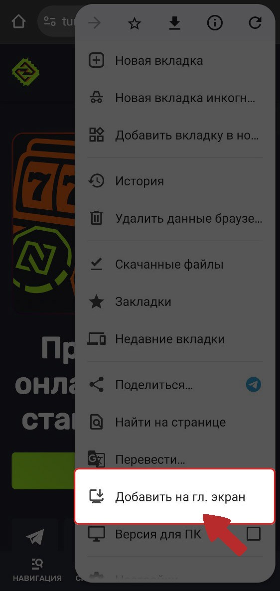 3. Выберите пункт "Добавить на главный экран" (Add to Home screen).