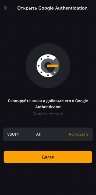 8. Скопируйте полученный ключ и вставьте его в приложение «Google Authenticator» для завершения настройки.