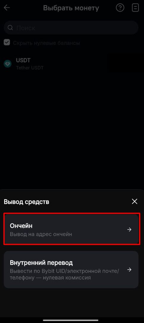 6. Найдите и выберите валюту, которую выбрали для депозита. Для удобства поставьте галочку «Скрывать нулевые балансы», чтобы отображались только доступные активы.