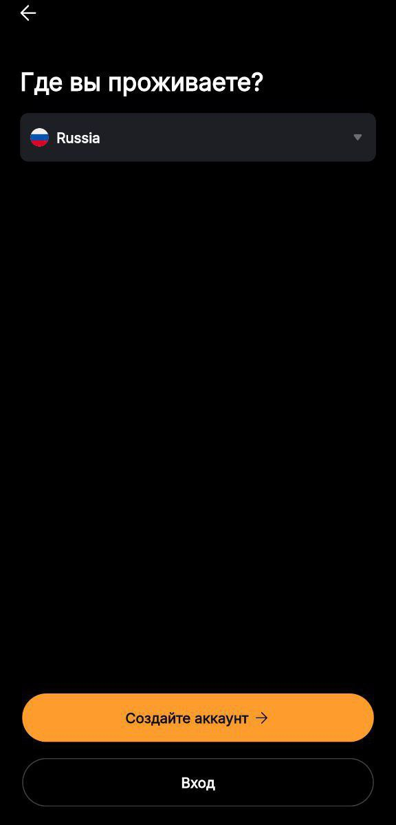 2. Выберите регион проживания – от этого будет зависеть регион Р2Р торговли.