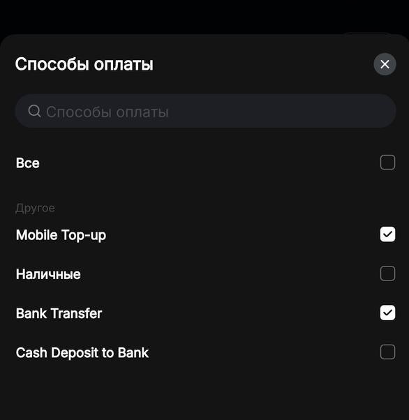 2. Выберите метод оплаты «P2P трейдинг» – сделки напрямую между пользователями платформы.