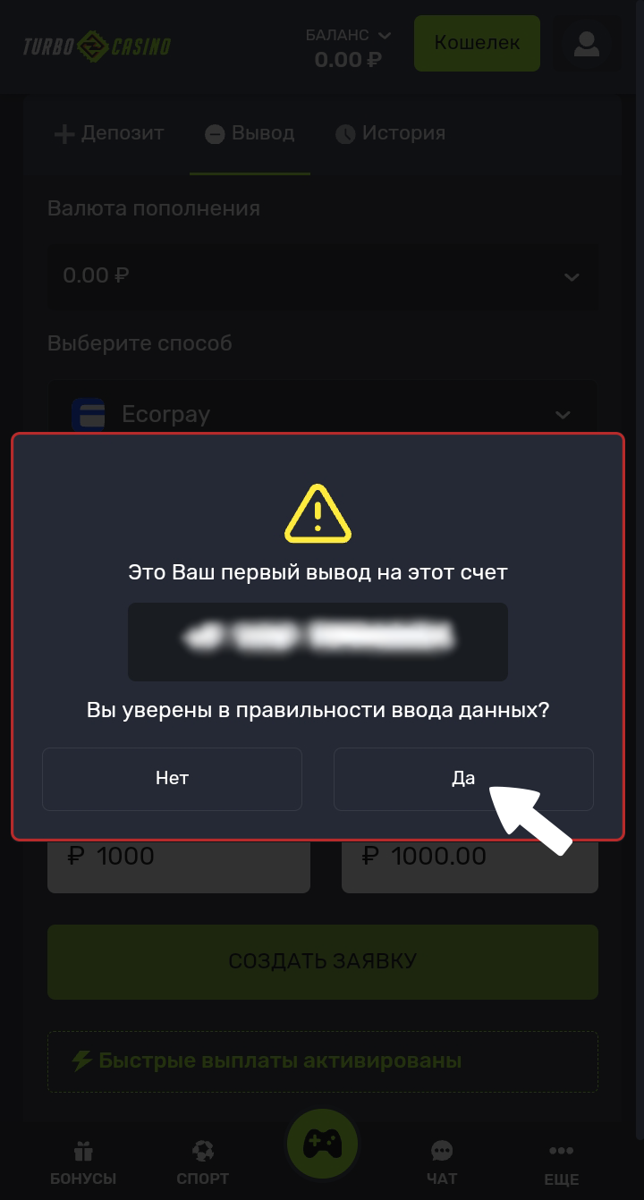 1. Убедитесь в том, что у вас создан кошелек Ecorpay, в случае, если его нет возможна ошибка вывода.