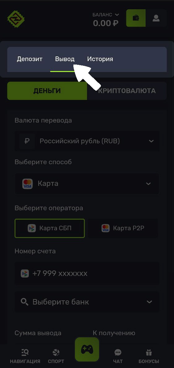 3. Измените валюту для вывода на криптовалюту